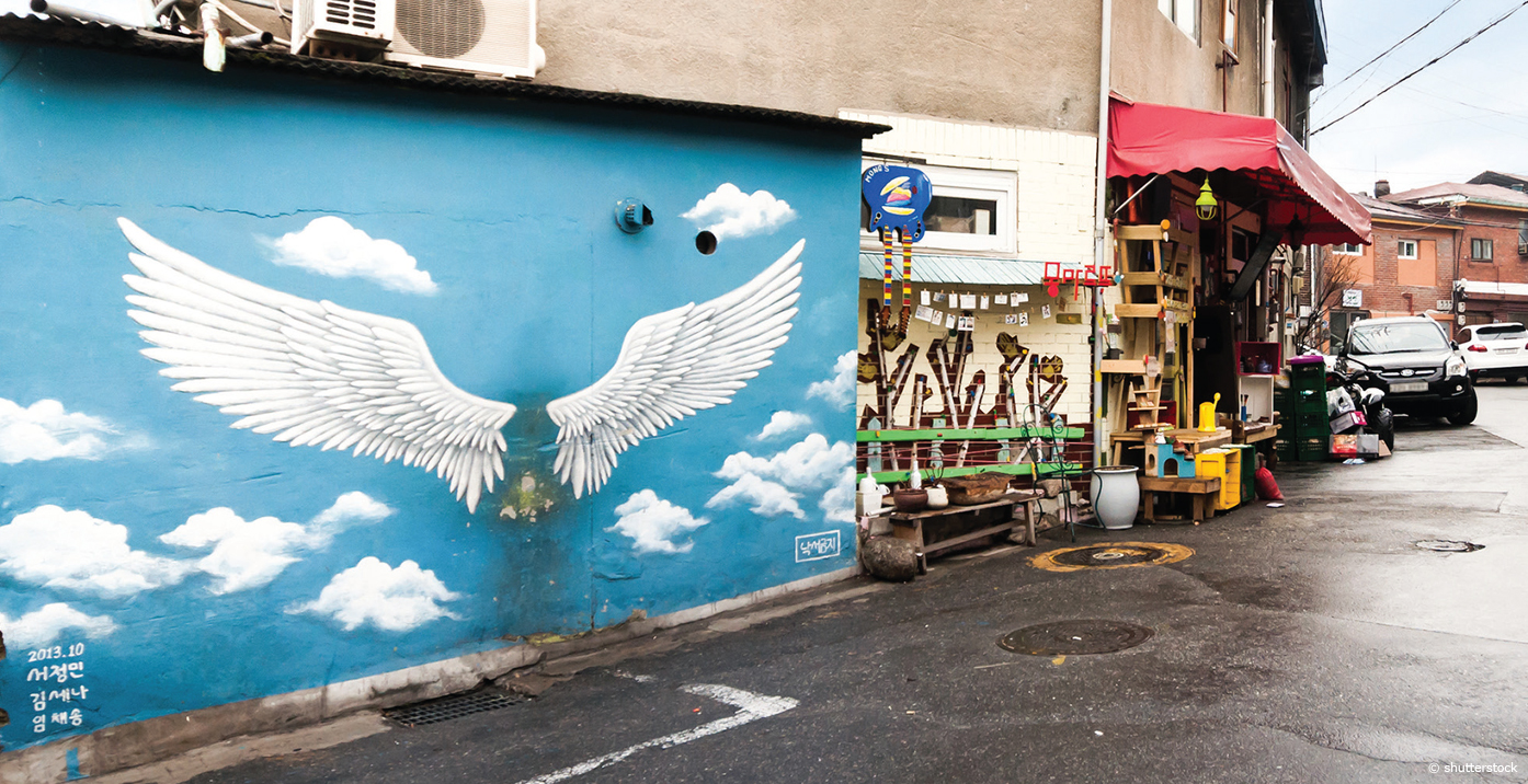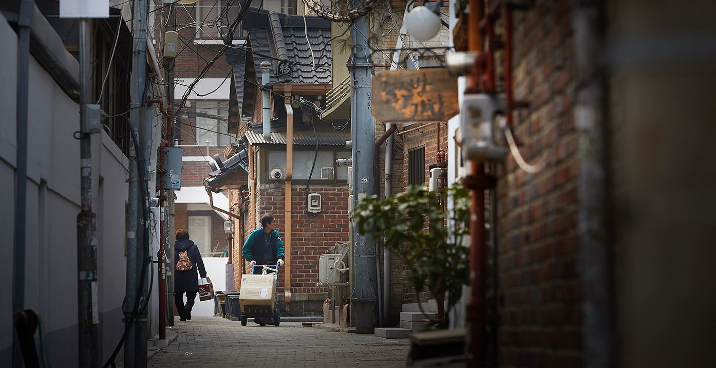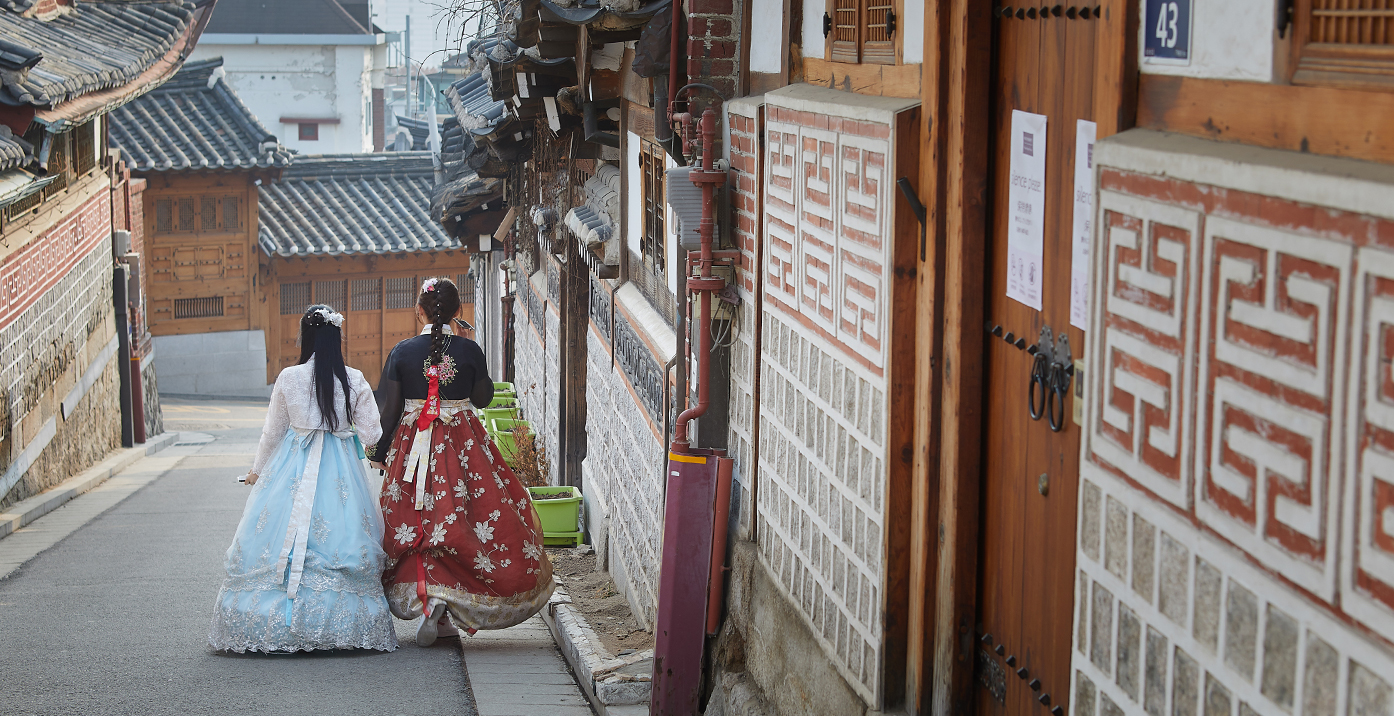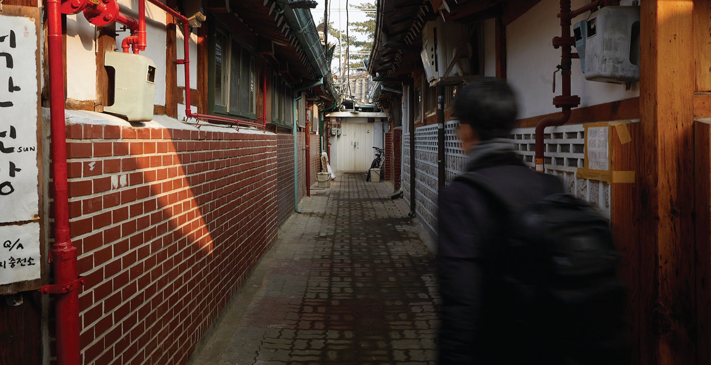 The alleys, lined with traditional Korean houses, are broad and neat.