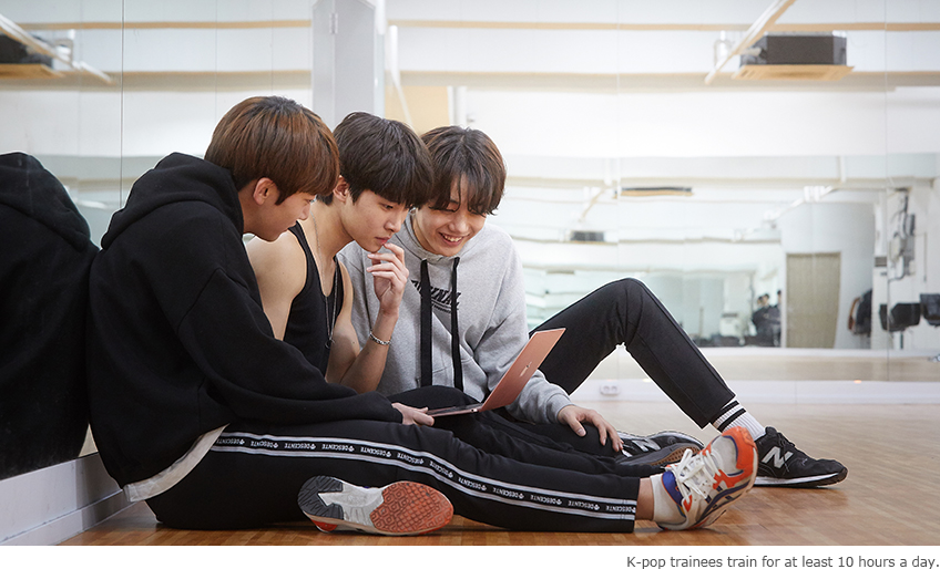 Once they make their debuts, the artists are micromanaged by their agencies. Most live in dormitories. This allows for more control, but also strengthens the sense of teamwork, and saves time during busy daily schedules. Sharing their personal lives on social media is how they become more intimate with their fans, but it also means having less time for themselves. The phenomenal success of a few Korean pop stars has, in many ways, overshadowed their hard work and determination.