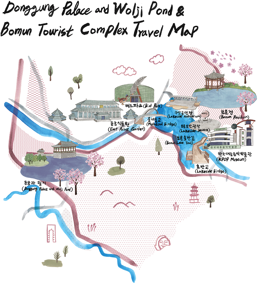 Bomun Park is well-known for its beautiful cherry blossoms that draw crowds of tourists and photographers every year. It's a great place for a walk among the flora with friends, families or a date. The Bomunjeong Pavilion, located on a small lake at the Bomun Tourist Complex, is noted for its outstanding beauty and is ranked 11th on CNN’s list of “50 beautiful places to visit in Korea”. The beauty of the pond is present all year round, with cherry blossoms in the spring, lotus flowers in the summer and autumn colors in the fall. In the winter, a luxurious layer of white snow covers the water, making for an unforgettable scene of tranquility.