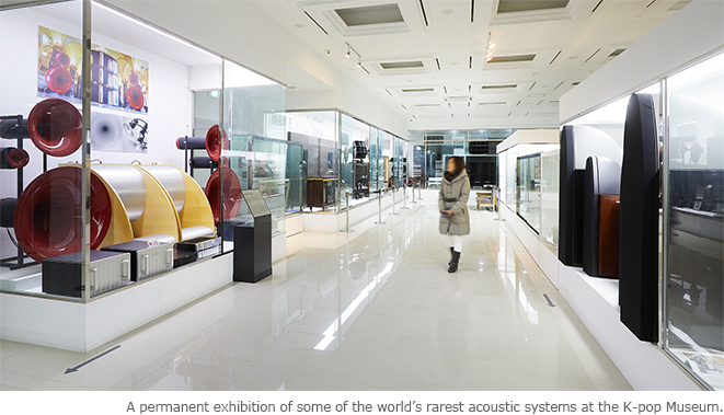 Other than the history of Korean pop music, there’s also a room where visitors can listen to music using a wide range of audio systems, from that used in the first talking films in the 1920s through to nostalgic retro devices, such as cassettes and Sony Walkmans, to the most prestigious high fidelity systems available in the world today.