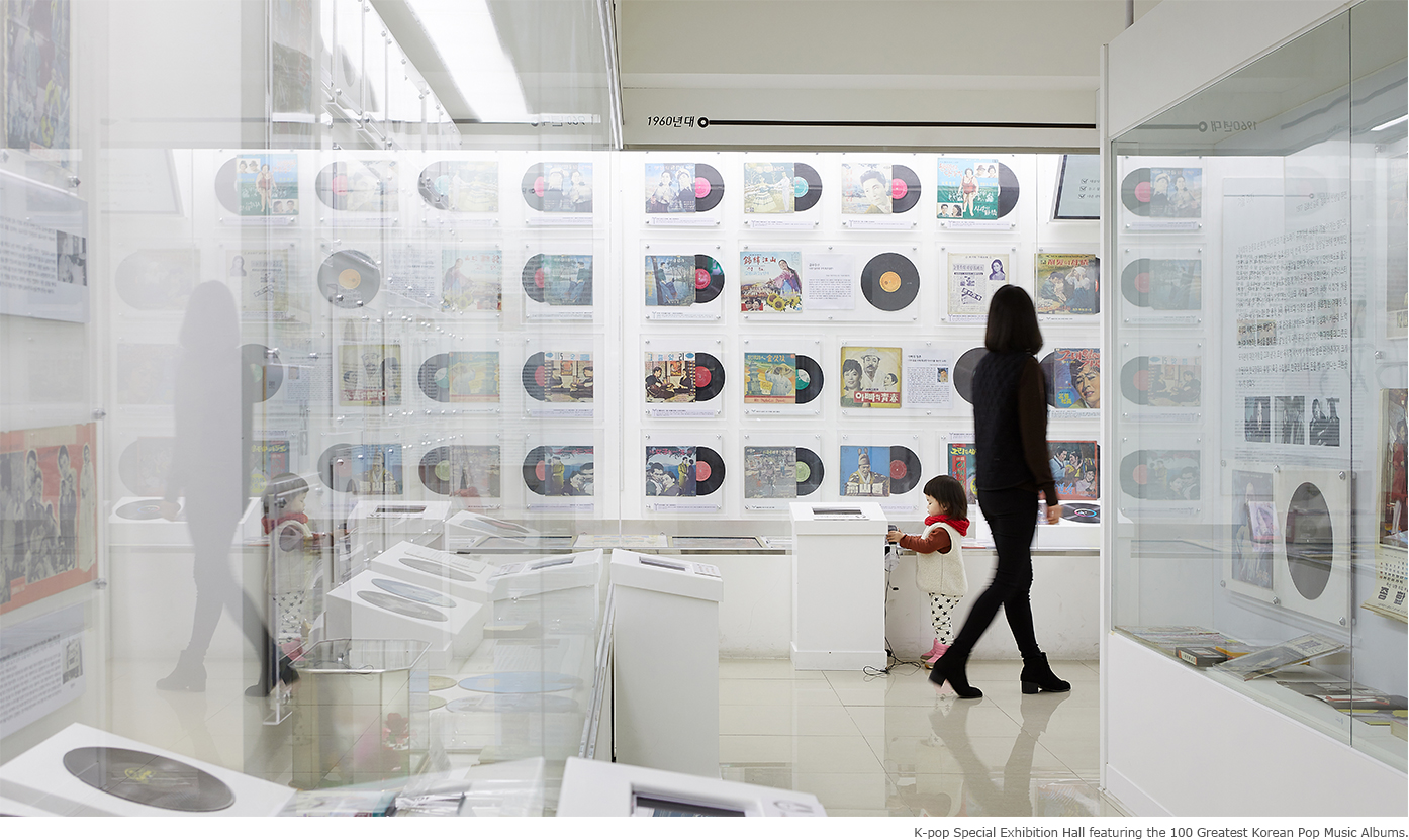 The 100-Year History of Korean Pop Music is a permanent exhibition that has on display records and artifacts from 1907 to the present, all selected for their historical meaning and rarity. These rare albums and artifacts represent their eras and have been made accessible to the public to show the role that popular music has had on the history of modern Korea, as well as on the evolution of that music over the decades.