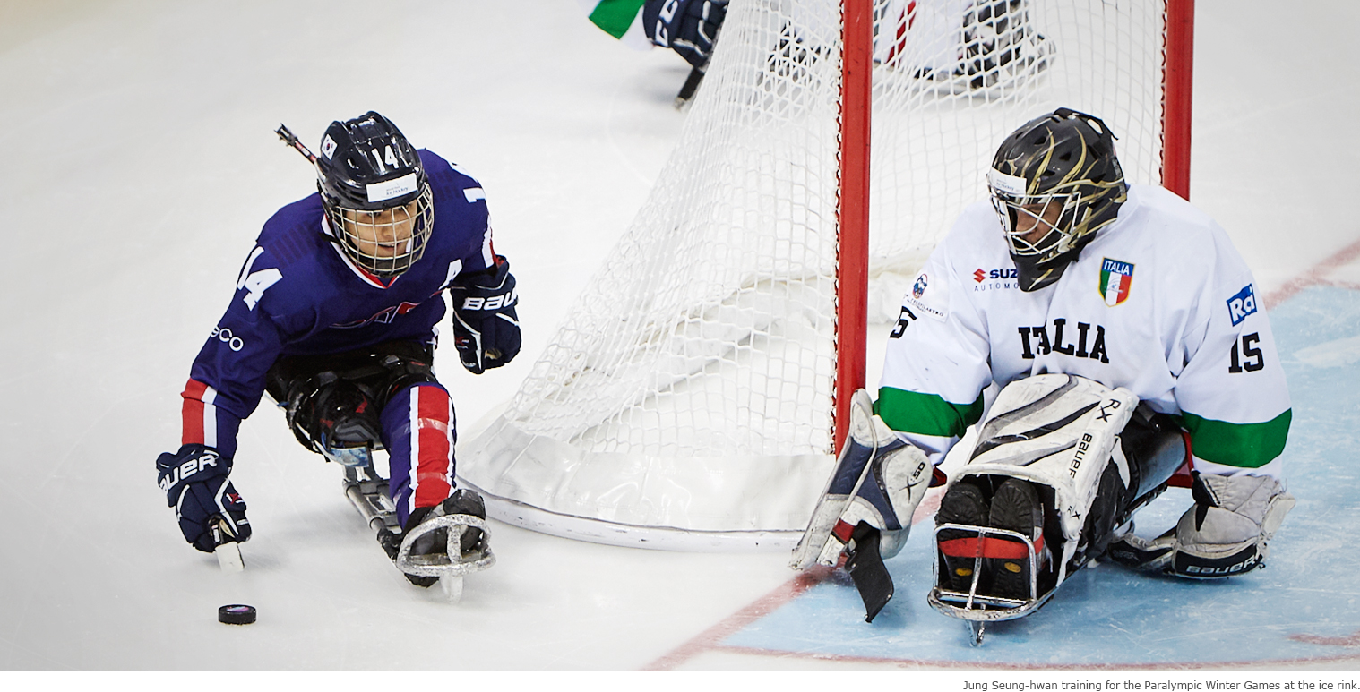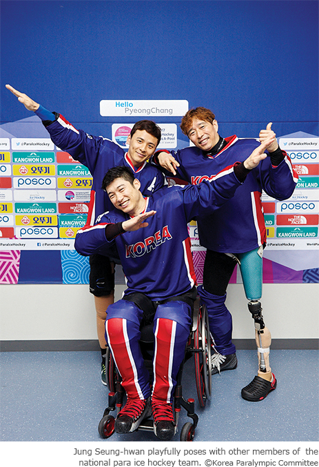 Jung’s career as an ice hockey player has been nothing short of remarkable. After all, he's an international athlete with fans in Korea and around the world. With Korea hosting the PyeongChang 2018 Paralympic Winter Games, Jung hopes that the public will develop a more mature perspective toward disabled people. He would like to be known as a ice hockey player, not someone who has overcome some disability.