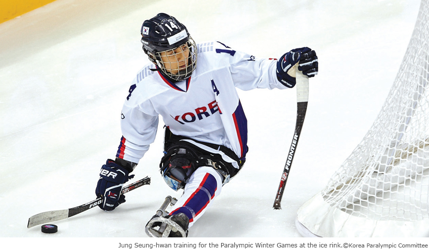 Jung Seung-hwan, is a para ice hockey player and honorary ambassador for the PyeongChang 2018 Paralympic Winter Games