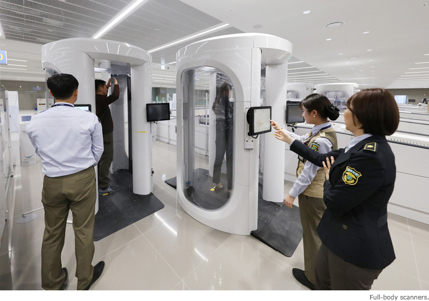 After the opening ceremony, President Moon headed to the security checkpoint and inspected the newly installed 360-degree security scanners. The scanners take only three seconds to scan each passenger, and display detected anomalies on body-shaped avatars. Expected to serve an estimated 70 million passengers this year, the second terminal will have a plane taking off every minute. The president added that safety and security are top priorities, especially considering the nature of airport operations. The airport hopes will make Incheon a hub not only for the region but for the world.
