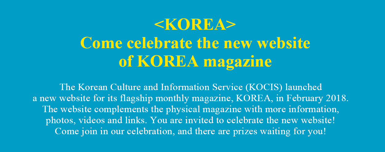 Other Articles Photo Essay The global growth of Korean pop Story K-pop today,K-pop tomorrow Trends & Traditions Gugak and K-pop: Sharing the Spotlight Travel Gyeongju,Where Past Meets Present People Jung Seung-hwan, para ice hockey player Design Goods,well-designed things Current Korea New Terminal Features Improved Safety,Smart Technology, Services Flavor Jjimdak,Korea’s Take on Chicken Korea & I Volunteering at PyeongChang Games with a disability Policy Review Korean Culture Blooms in Hong Kong