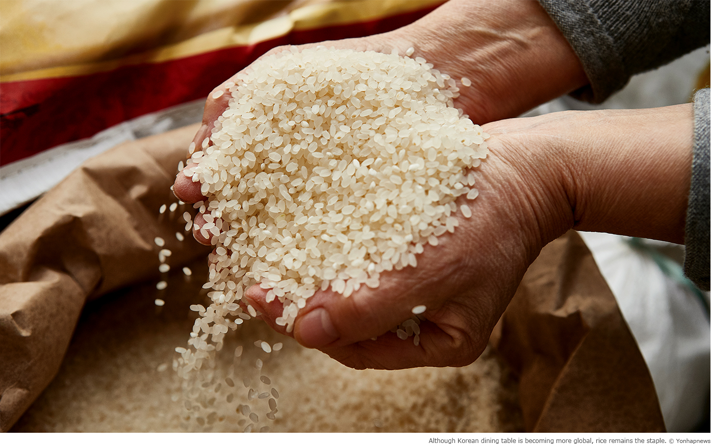 When starchy rice is chewed slowly for a long time, the amylase enzyme in the saliva is activated. The ptyalin in the amylase plays an important role, hydrolyzing the starch in the rice into sugar. This is why rice tastes sweet when chewed. The addition of saltiness and spiciness from the side dishes further enhances the flavor of the rice.