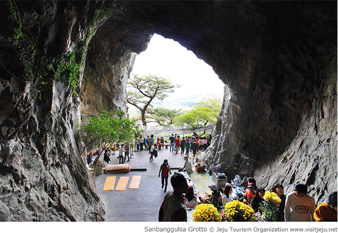 At the foot of Sanbangsan Mountain is the Sanbanggulsa Grotto, a small grotto temple. Here, one can have the unique experience of looking over the sea from a tiny temple situated on the majestic Sanbangsan Mountain.
