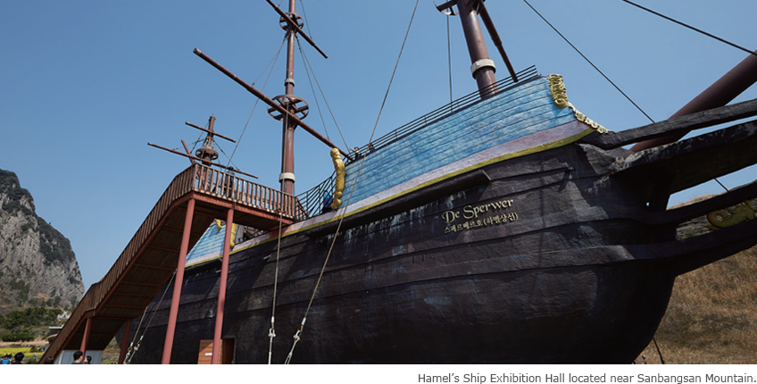 Hamel’s Ship Exhibition Hall is located at the foot of Sanbangsan Mountain, near Yongmeori Beach.