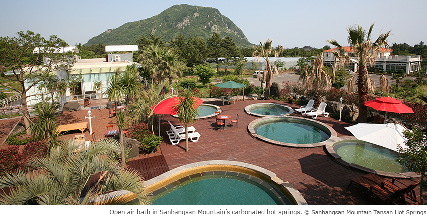 The Sanbangsan Mountain Hot Springs in Sagye-ri, Andeok-myeon, Seogwipo-si, are carbonated hot springs, a rare phenomenon on the Korean Peninsula.