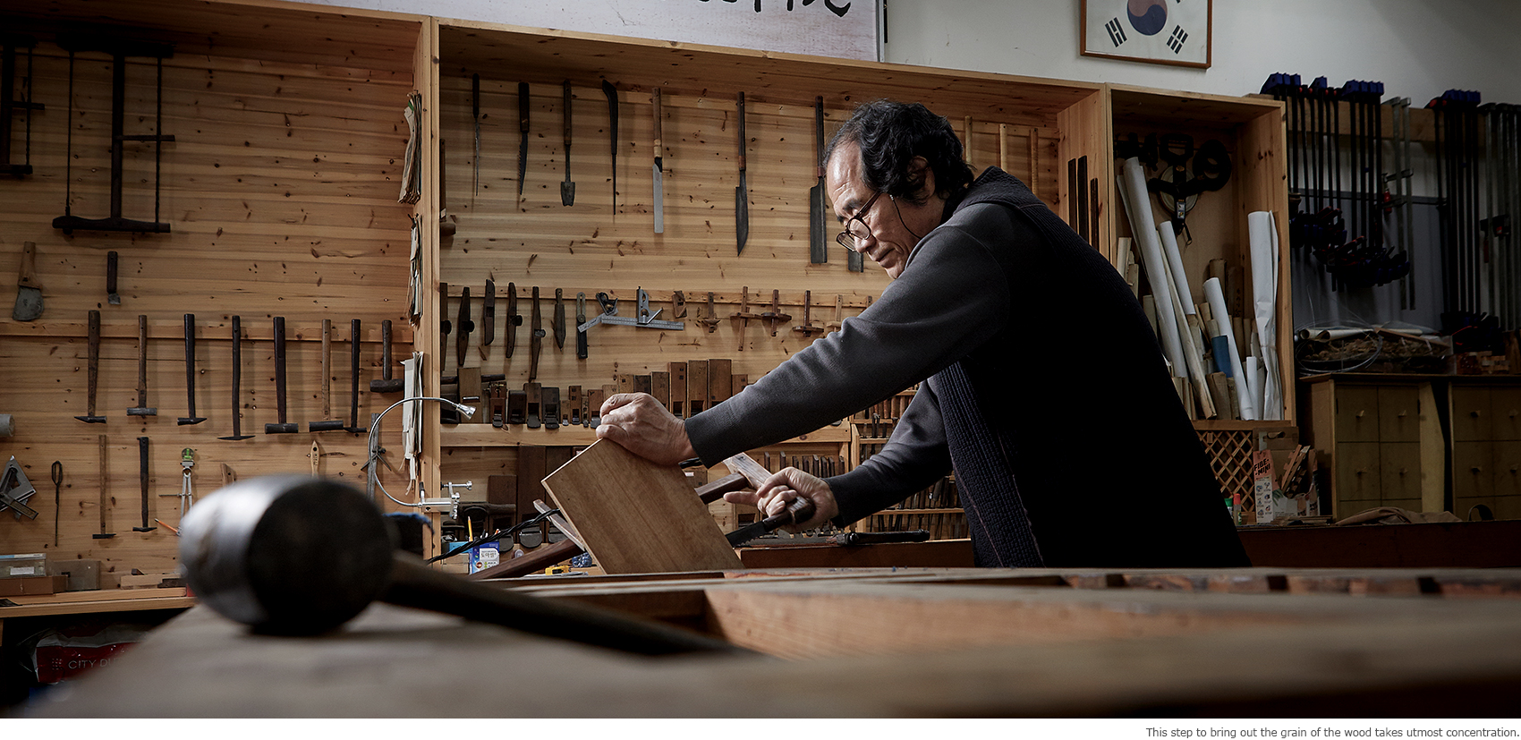 So Byung-jin worked relentlessly from the day he first held a plane in his hands. He mastered key skills in just two and a half years, when it would take others at least 10. In 1971, he won a silver medal in the furniture-making category at the World Skills Jeonbuk competition.