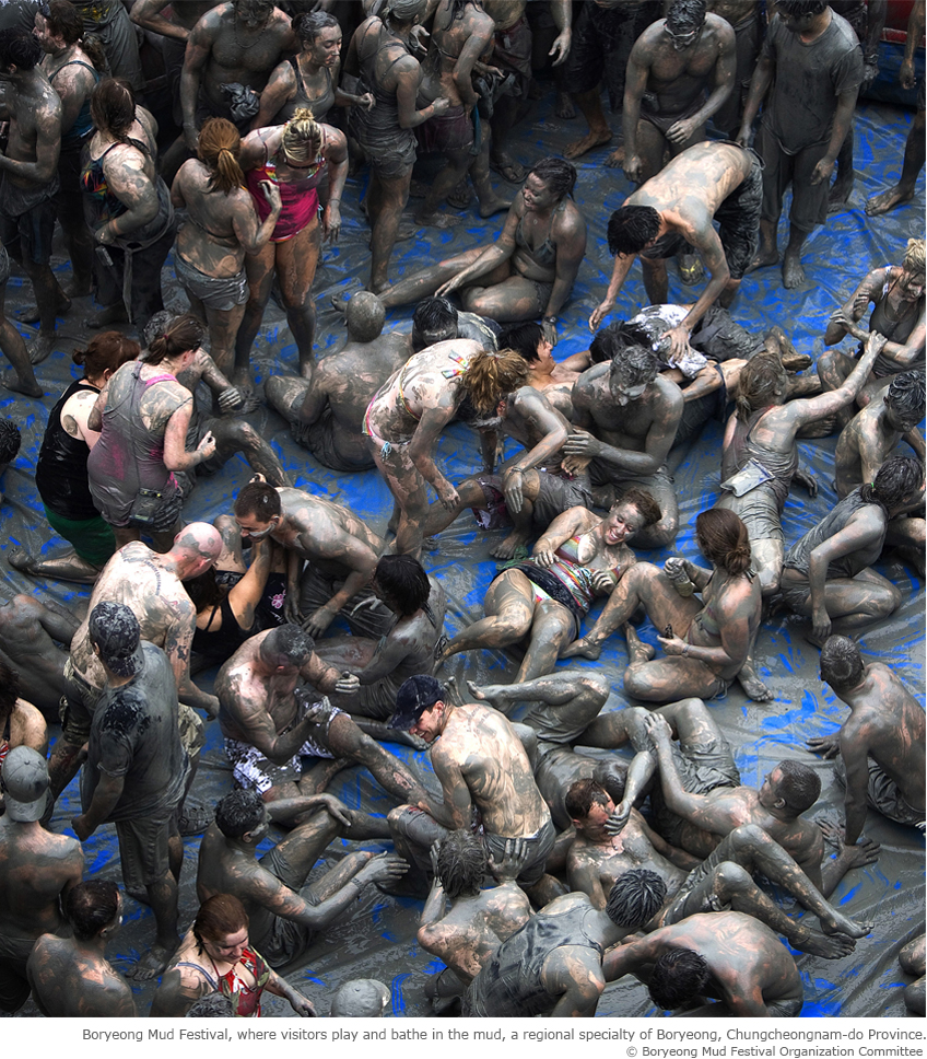 The greatest strength of collaboration is the blurring of boundaries. Humans are able to truly enjoy a moment when the boundaries between the self and others disappears. This is the true nature of ecstasy. Collaboration on festivals attracts people into a convergent blend. For example, the Boryeong Mud Festival invites visitors to a place where there is mud, sun and the sea, and play and performance are blended together. Everyone gets muddy and everyone becomes one in the joyous rhythms. The people participating in the festival are its focus. A festival with a similar spirit is the La Tomatina festival in Spain. In fact, these two festivals have formed a partnership for mutual promotion and joint exhibitions.