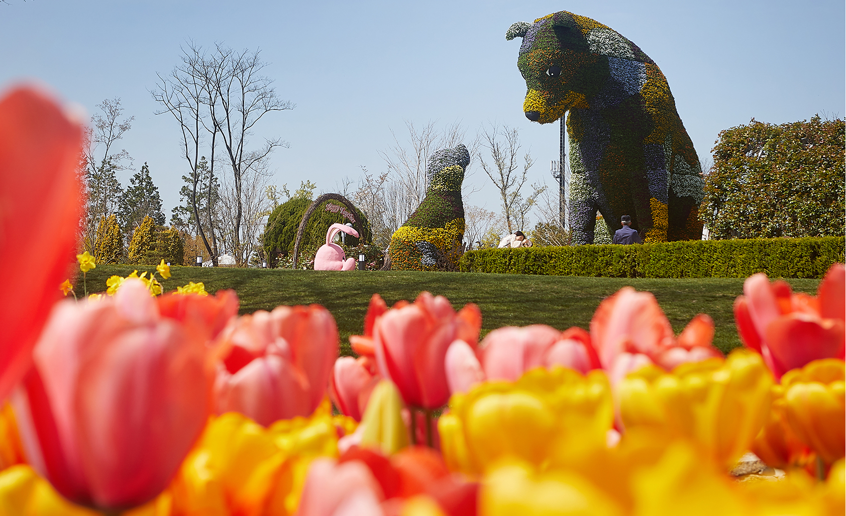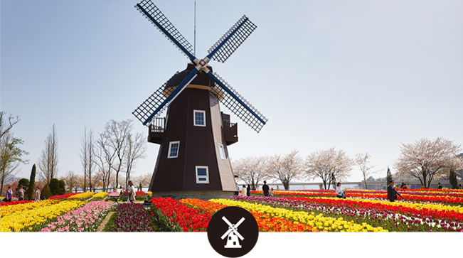 Every spring, the Dutch Garden comes alive with its colorful beds of tulips. The lovely flowers are a favorite of children, making them run about the garden in delight. The glorious flowering bulbs are a perfect match with the playful, delicate vibe of spring. As the tulips in the Netherland’s Garden are the first to bloom and fall in the Suncheon Bay National Garden, the crowd is at its peak at the time of the tulip’s coming into bloom. Seen with eyes, their colors are too beautiful to be believed as the creature of nature. There are some visitors who touch the petal, suspicious if it is artificial. But please enjoy flowers with your eyes only.