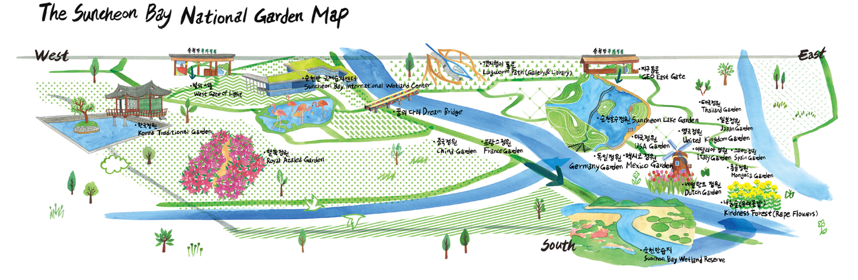 Participate in the show, learn more about the Suncheon Bay National Garden and write your own experiential learning report! Forms can be obtained at the East Gate Information Booth, the West Gate Information Booth and at the Ecotour Experience Learning Center. You can fill them out in either English or simplified Chinese. For a more memorable experience, head to the Pond Garden to have your portrait drawn with the beautiful landscape of the Suncheon Bay National Garden in the background.