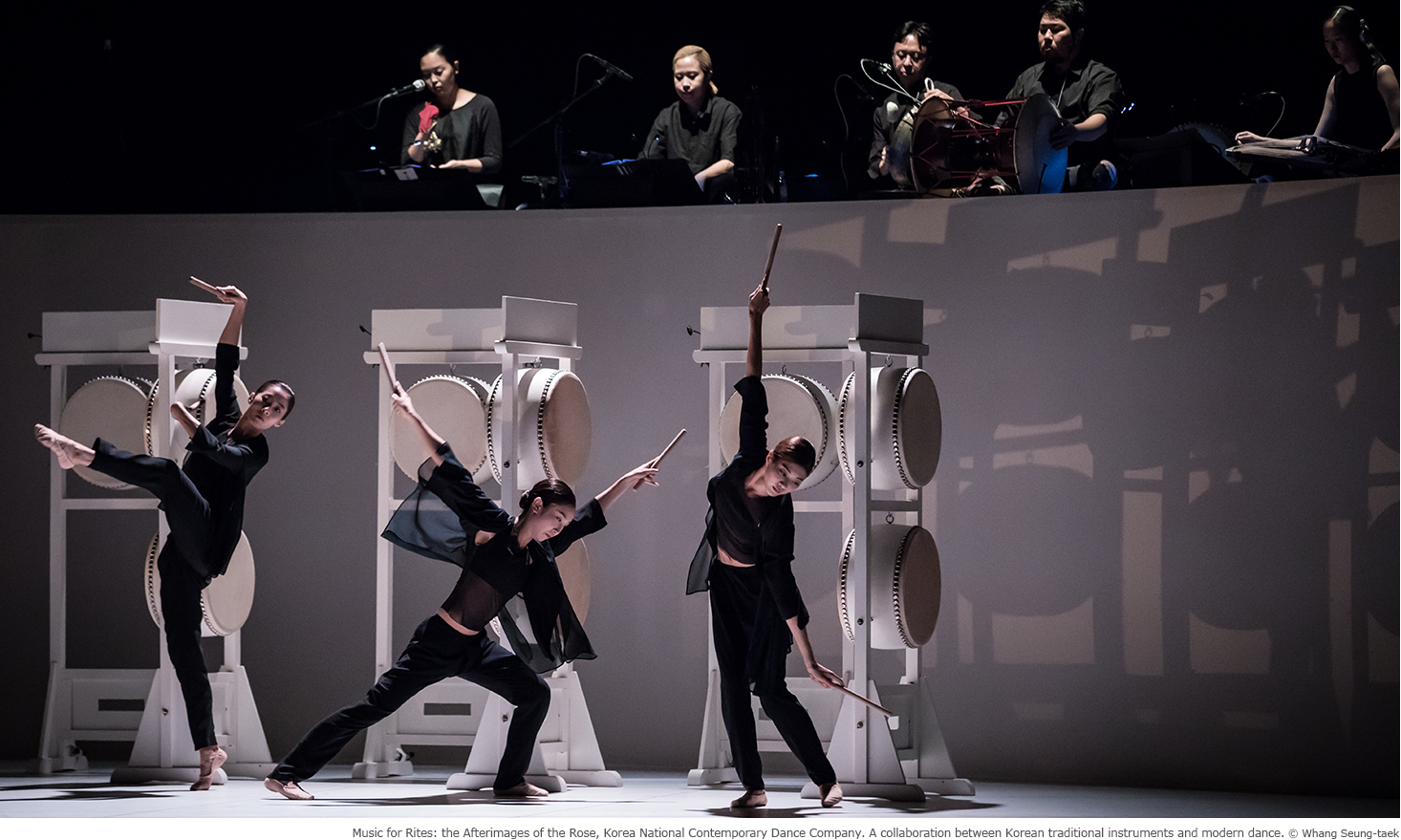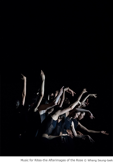 “Music for Rites - The Afterimages of the Rose,” known as an extended version of “Rose” (premiere in 2009), and “Immixture” (premiere in 2016) both feature music composed entirely for traditional Korean musical instruments, excluding any modern instruments. A show that featured traditional Korean music played live as well as modern dancers took place on the same stage, at the same time. It was directed just like a movie. What’s different from movies is that the audience watches a live scene in front of them, rather than an edited version on a screen. In fact, Director Ahn shoots, monitors and edits video clips of every dance sequence. The scenes that have survived his final editing, so to speak, are put to stage. “That’s why I have no regrets about movies now. We make choreography as if we’re making movies. It’s not shot film, but live performances by real people.”