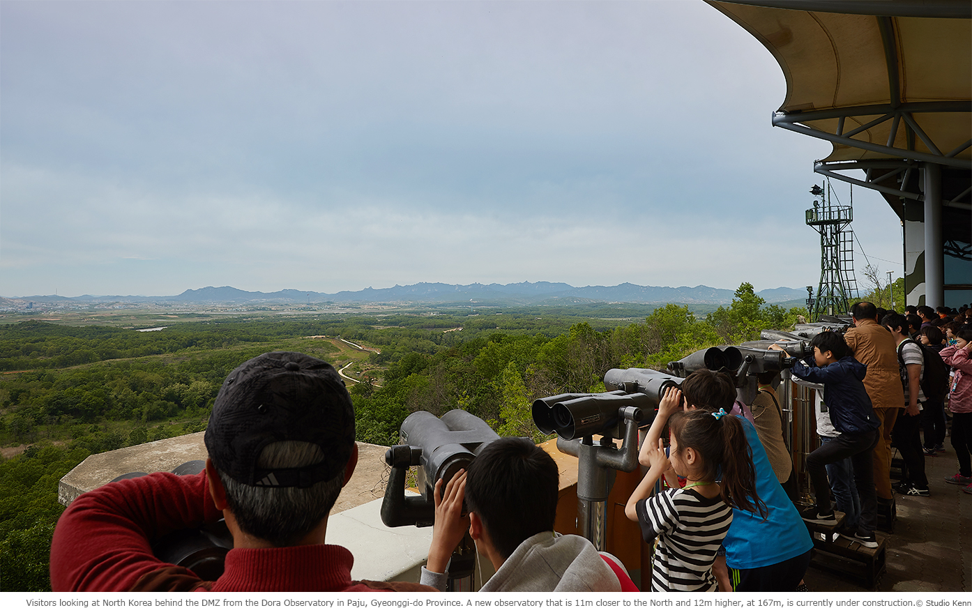 From the southern side of the DMZ, the North Korean guard post comes into view, along with a village in the distance. There are people working in the fields. If the Korean War had not happened, the village would have been a 30-minute walk away. The reality of a divided nation is reflected in the lyrics of a heart aching song: “You can fly to the moon, so why not Pyeongyang, too? It’s much closer than the city of Gwangju.”