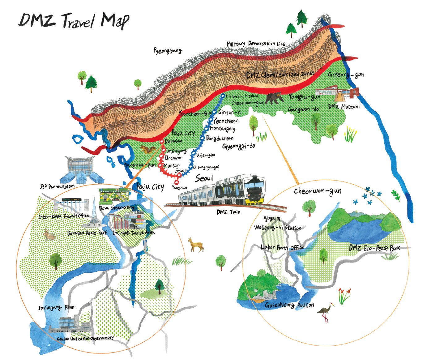 The DMZ is no longer looked at as the most dangerous, forbidden place on earth that welcomes no one. The DMZ is now more approachable and much closer to the people. Tours and nature tours that highlight the geological and historical importance of the DMZ are drawing people closer to this land, full of hope. Let us experience the DMZ with our eyes and hearts, breathing in the scent of hope and life.