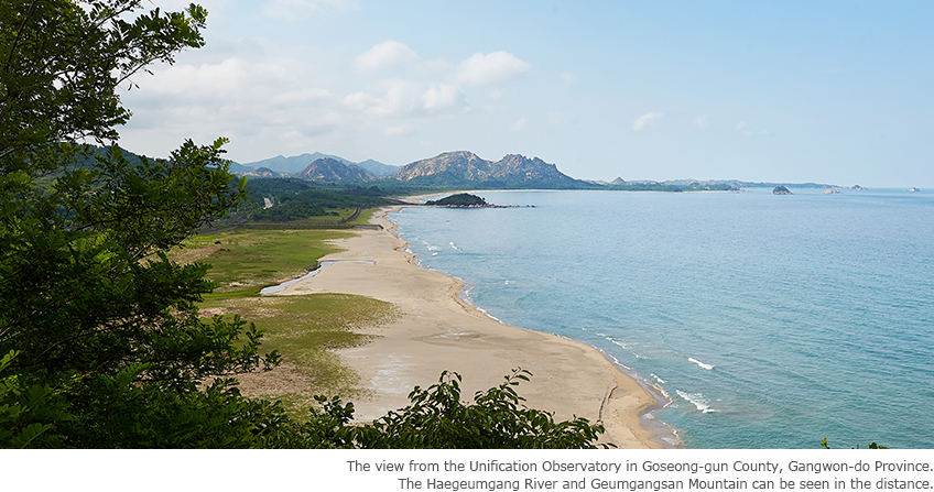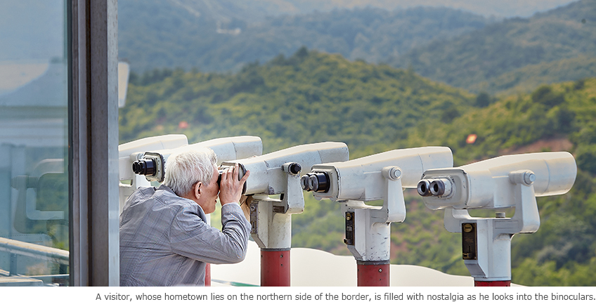 Upon arrival, visitors will enjoy the scenic vista of Haegumgang River and Geumgangsan Mountain’s Guseonbong, Oknyeobong, Chaehabong, Ilchulbong offered by the observatory located 70m above sea level. Visitors will also see the nearby guard posts and the guard posts of the North stand facing each other with their barbed-wire fences of the ceasefire line separating them. Both tension and hope reside in this significant place.
