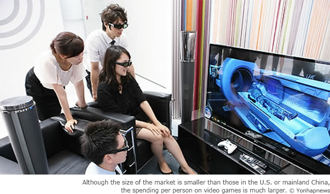 Korean video game makers are now turning to global markets. Export figures for Korean video games have not been insignificant, with a series of popular games seeing success, such as “CrossFire,” which once topped over 3 million simultaneous users in 2011 in mainland China. However, more and more Korean video games are being targeted at non-Korean audiences in the initial production stages in an attempt to break out of the increasingly saturated domestic market.