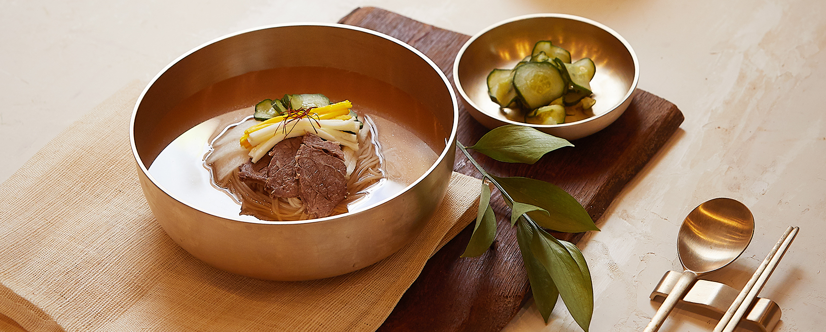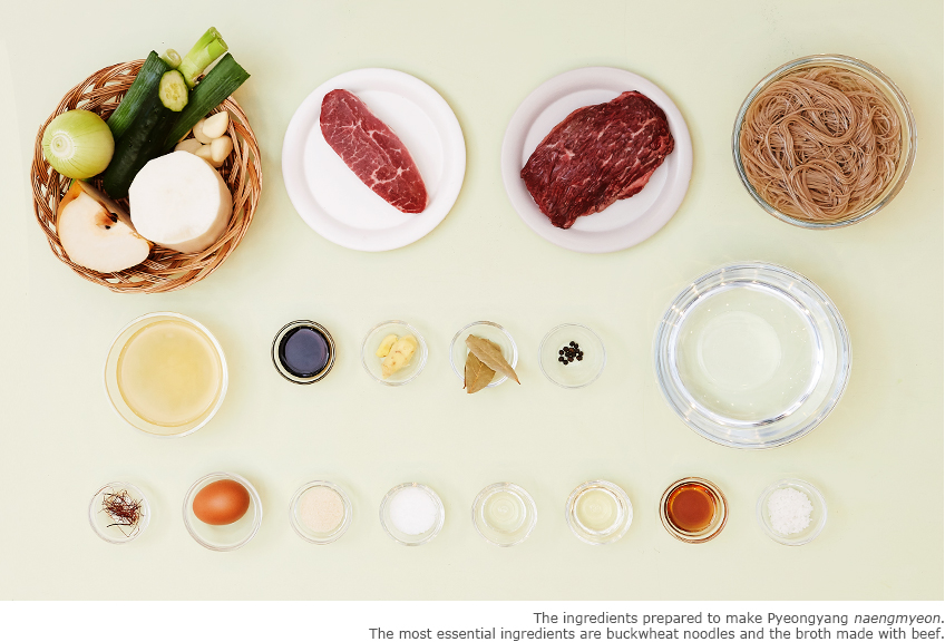 Having long been the cultural and economic center of northwest Korea, the city of Pyeongyang, now the North Korean capital, has sprawling plains and is close to the West Sea. Thus, it’s abundant in both agricultural and marine produce, resulting in a famously diverse cuisine. The dishes are usually not heavily salted or spiced, and are generally characterized by a clean flavor profile. This is the culinary environment in which Pyeongyang naengmyeon was born.