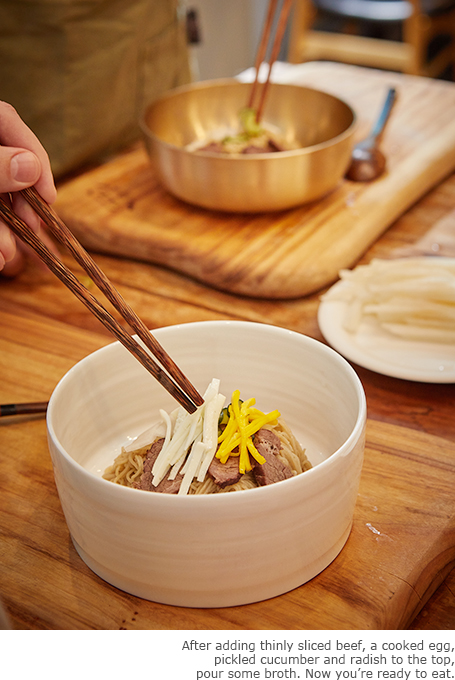 This is also why Pyeongyang naengmyeon has a unique charm, which is not apparent at first, but which slowly wins you over, as told by numerous cold noodle aficionados.