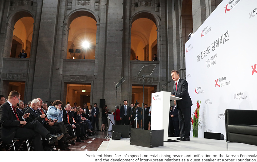 Despite challenging conditions created by North Korea’s repeated missile launches and nuclear weapons tests after his inauguration in May 2017, President Moon has been consistent in his stance that peace and prosperity on the Korean Peninsula should be achieved through inter-Korean dialogue and cooperation.