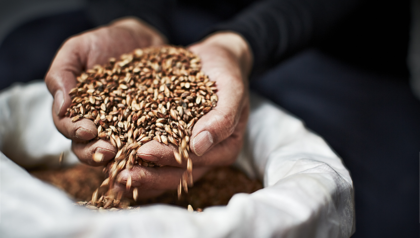 A handful of malted barley becomes fresh beer. © Korea Craft Brewery