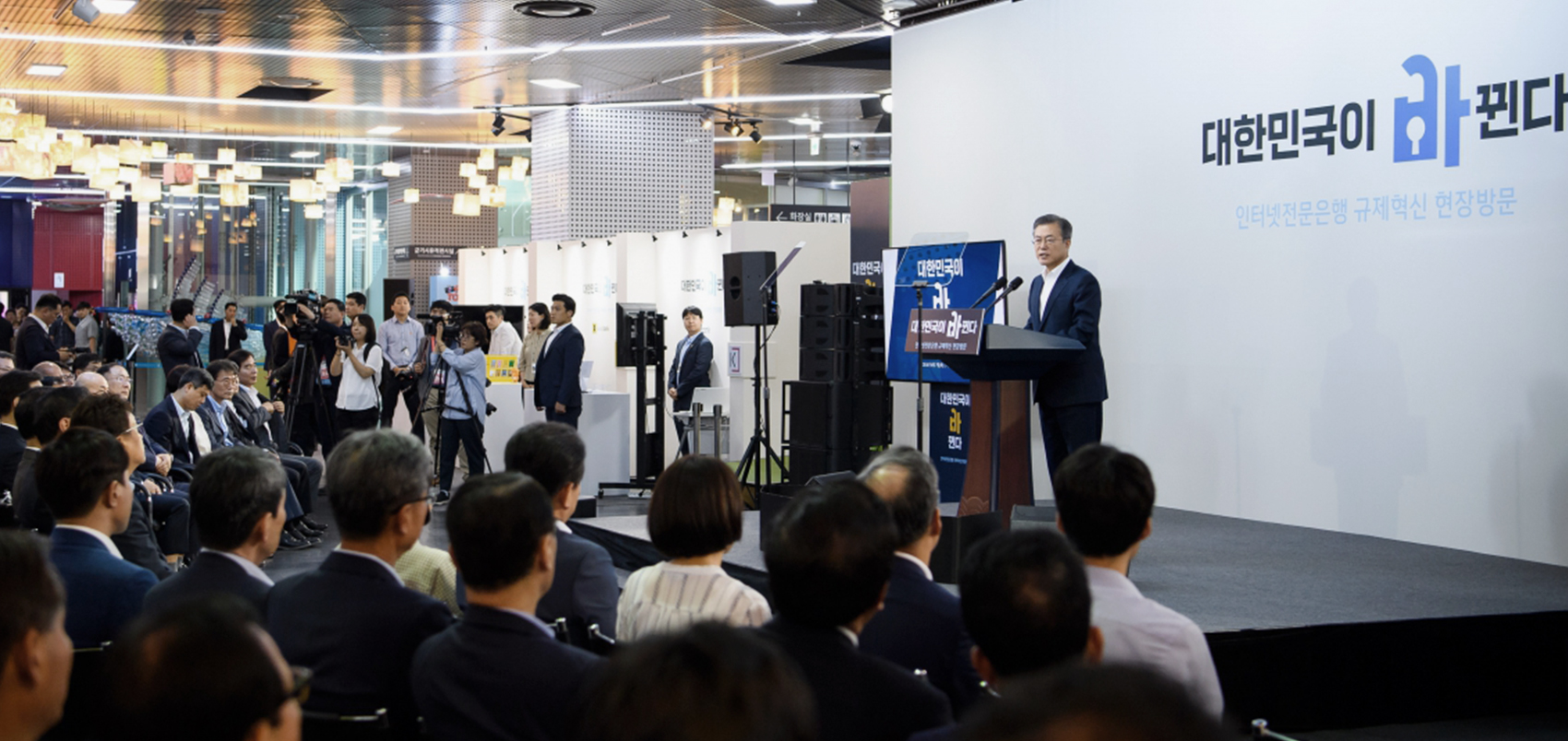 Addressing representatives from online-only financial businesses on Aug. 7, the president recognized that what he called “banks in my hand” ─ technologies that allow citizens to access their bank account and banking services at anytime and anywhere through their mobile phones ─ have brought a breath of fresh air to the entire financial sector, but that they are facing difficulties making progress in the market due to regulatory restrictions that favor existing financial business structures.Calling for regulatory reform that befits the changing landscape of the financial sector, President Moon said, “Regulatory innovation for online-only financial service companies is part of the process to allow innovation while firmly abiding by the basic principle of separation between banking and commerce. Regulatory innovation for internet-only banks will be like opening a reservoir onto parched fields. Deregulation of online banking could lead to innovative growth in the financial sector and new industries, which could, again, set a new course for Korea’s economic growth.”