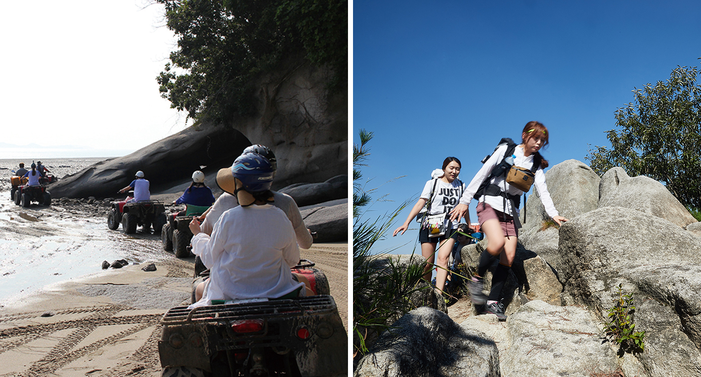 left : You can ride the ATV on the gravel or sand. When riding along the sea, you will witness the hidden part of the mudflat as the tide goes out. © Incheon Tourism Organization