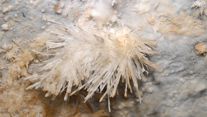 The flower-like formation in Yongdamgul Cave.