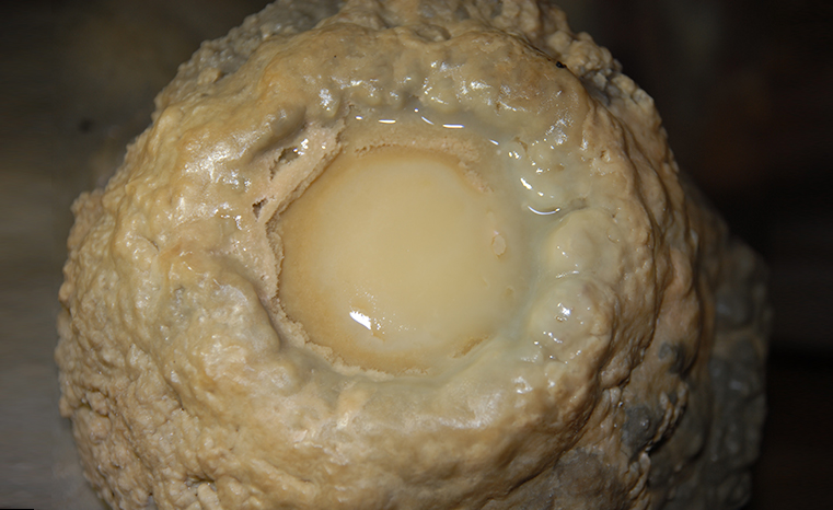 The uniquely shaped stalagmite in the Baekryonggul Cave looks like a fried egg.
