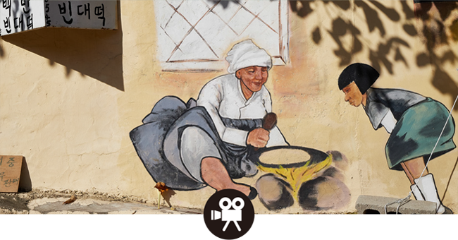 The Cinema Village, famous as the location for the movie “The Harmonium in My Memory,” is located in Geumgok Village. It was first discovered by director Im Gwon-taek as a location for the movie “The Taebaek Mountains.” Since then, it’s been used as the location for director Kim Su-yong’s “Scent of Love” and MBC drama series “The Boss.” The village is located deeper in the valley than expected. Water babbles along the small stream, and traditional Jangseung poles greet visitors at the entrance. The sight of the persimmon tree branches heavy with fruit, white smoke rising from the chimneys, humble terraced fields, and the horse mill in the center of the village inspire strong nostalgia for days almost forgotten.