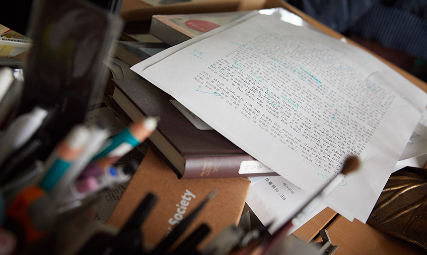 He willingly allows us to take a picture of his desk with his incomplete writings.The beginning of his career wasn’t as bright as it is now. It took a while to publish the first collection of his poems after his debut as a poet. He had the fear that no one would read the poetry he wrote with great effort. He got rejected by a publishing company and couldn’t release his collection. There was a time people didn’t care so much about poetry. However, he never gave up his love and passion for poetry, writing radio scripts as if he were writing a poem, and always writing poetry even when he was traveling. “I utilized the power of anxiety when I wrote poems. The path I chose was different than other people who go to school and get normal jobs. I had my shares of efforts I needed to make and hard work I needed to do, and I did what I had to do. I had a belief that if I couldn’t be a poet who could write good poems, I wouldn’t be able to choose anything else in life. Poetry makes me who I am.”