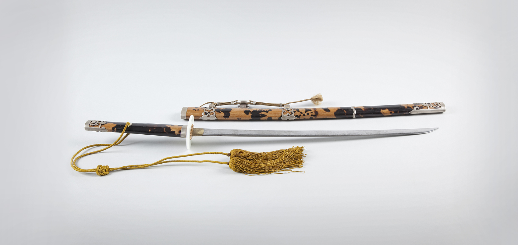 Daemobogeom's hilt and sheath are carved from the whole shell of a sea turtle, which allows the blade to show through the sheath. © Suwon Hwaseong MuseumA traditional sword mainly used in the Joseon era (1392-1910) as a sidearm was called hwando, named for the rings hwan on the sheath that allowed cord to be tied around it. This traditional sword was typically only about 70 cm long, light and gently curved or straight. This was probably because the soldiers had to wear heavy armor and carry their bow, arrows and shield as well, leading to a preference for lighter swords. They held the shield in one hand and hwando in the other, and could easily sheath the sword to grab the bow when needed. During the Japanese invasion of Korea in 1592, the length of the sword became as long as 90 cm, but got shorter again in the late Joseon era.