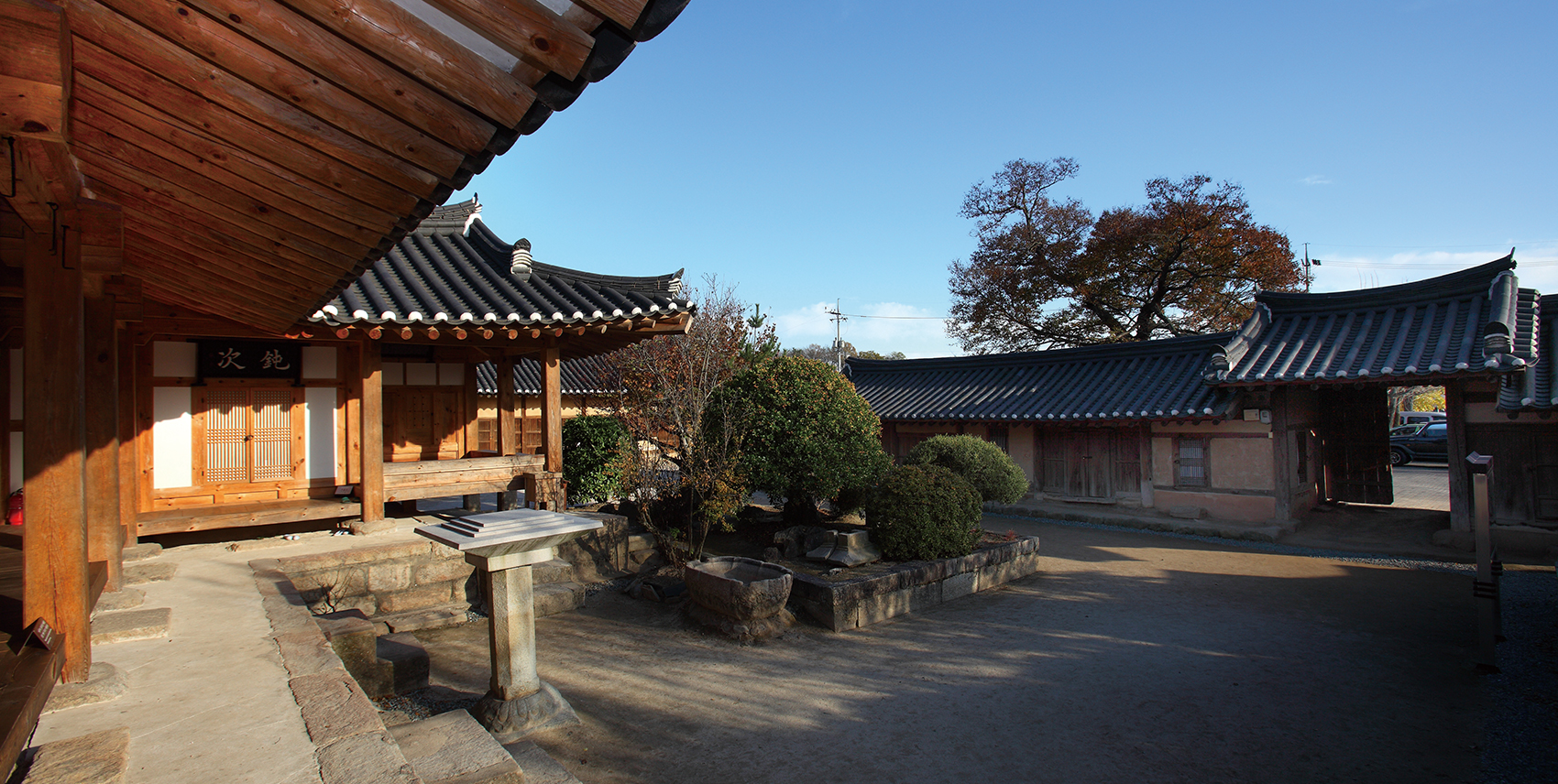 From the main gate, the order of the compound is the outer yard, servants’ yard and quarters, men’s yard and quarters, main yard and quarters, left and right auxiliary wings, and the backyard. On the western end of the main room is an ancestral shrine housing ancestral tablets and holding the top spot in the space hierarchy, followed by the main room and the guesthouse. The shrine’s location to the west of the main house is unusual since placing it to the east was typical. This placement shows deference to the ancient sages of the Confucian temple and school, as the shrine is located in close proximity to the hyanggyo.