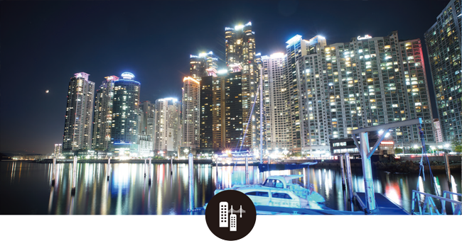 Located at the entrance of Dongbaekseom Island, The Bay 101 faces Marine City, filled with skyscrapers as high as 80 stories. It is quiet by day, but bustles with activity at night. The Bay 101 attracts hordes of visitors thanks to its beautiful view of Marine City and the night lights reflecting off the water.