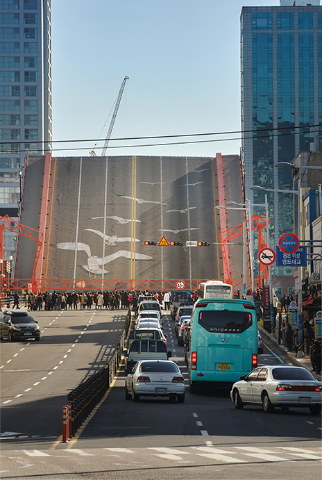 The monorail at 168 Stairs is available to any visitor. © Busan Metropolitan City Dong-gu officeIf you’re on the subway passing Nampo Station, you will hear the following announcement: “This station is Nampo Station, home to Korea’s only drawbridge.” While Busan is home to many amazing bridges, Yeongdodaegyo Bridge draws large crowds given its exclusive status. Every day at 2 p.m., people gather and cars stop to watch the drawbridge rise. For a few minutes, one side of the bridge lifts to an angle of 75 degrees. The seagulls painted on the asphalt appear to be soaring into the sky.