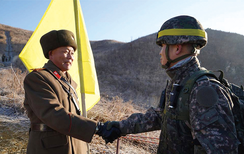 Military officials from South and North Korea shake hands at the Demilitarized Zone in Cheorwon, Gangwon-do Province, on Dec. 12, 2018. © Ministry of National DefenseThe North Korea of 2018 was not the North Korea of the past, when a regime had usually broken so many promises and abruptly walked away from dialogue when things would backfire on them.
