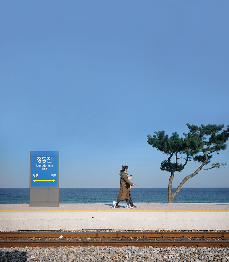 The train station near the open sea of Jeongdongjin is one of the most popular tourist spots in Gangwon-do Province. © studio Kenn