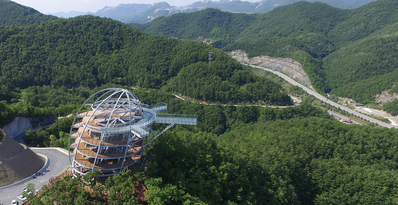 Three observatory decks appear in sight like stretched wings at the end of 30m-high spiral halls. Every step on the floor made with tempered glass makes anyone sweat. Visitors at the deck will be distracted by the flowing river of Namhangang beneath their feet. A breathtaking view from the deck and at the top of the observatory is worth all the courage it takes to get there; Dangyang is nestled in layers of mountain ridges where Namhangang River fills up the empty spaces. It’s not exaggerated to say that this is a picturesque view of Korea’s beautiful nature in a nutshell.