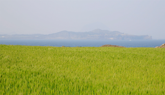 On the east side of the barley fields lies Hallasan Mountain and five small mountains surrounding the landscape, with Marado Island to the south. A festival is held in the middle of the fields where visitors can fly kites or stack stones while wandering around. Other cultural programs include a treasure hunt along the trail, a bicycling competition for couples and a barley tossing event. An overnight in the village is recommended if time allows since the sunset at the empty barley field is simply marvelous.