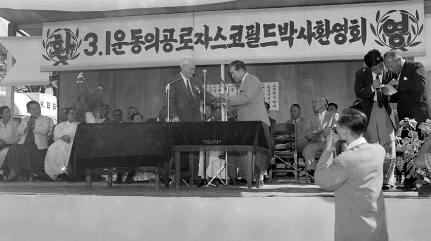 In 1958, the Korean government invited Frank W. Schofield as a state guest and expressed gratitude for his contributions to the March First Independence Movement. © National Archives of Korea