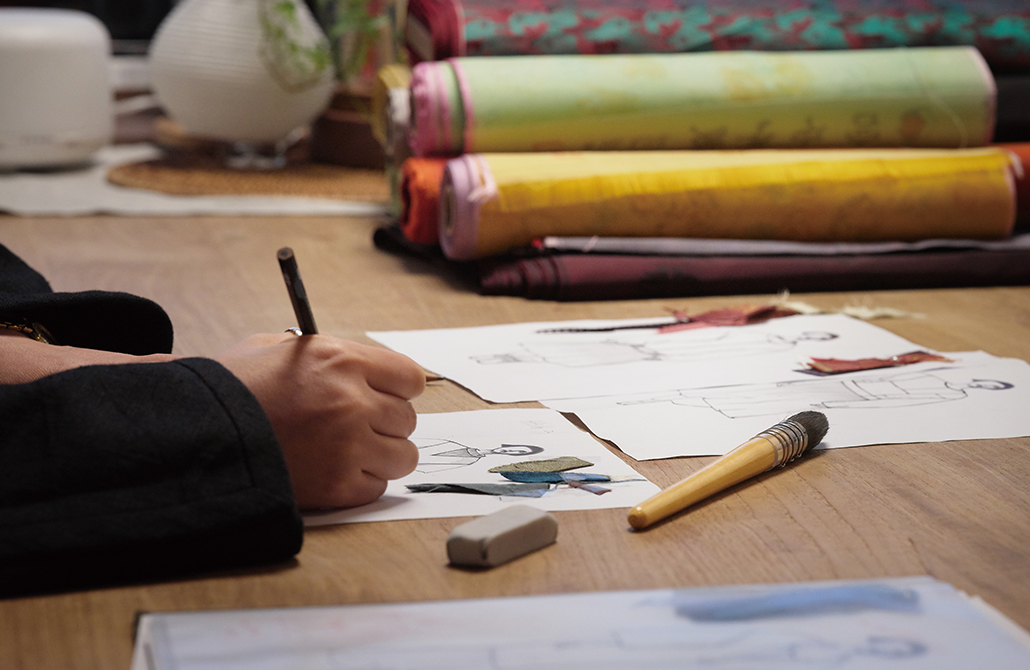 An idea is expressed in a drawing and transformed into a costume by hand.Twenty years of making clothes has provided Lee with an exciting journey spanning generations and borders. She has traveled abroad and studied various eras to research the origins of characters’ stories. Among the films she has worked on, she considers the most “global” the 2018 Korean epic “The Great Battle.” Due to lack of historical records in South Korea, she had to look through North Korean and Chinese materials, and it was impossible to look at surviving murals and know what costumes people wore at the time except aristocrats. “We had to add some imagination to history. Because cultural exchanges with other nations were abundant at the time of the film, we expanded the range of references to West Asia,” she said. “To realize the rough and coarse feel of the clothes, we visited several countries to find fabric woven by hand or loom. We thus designed and obtained the materials and produced thousands of clothes, underwear and even socks for over a year.”