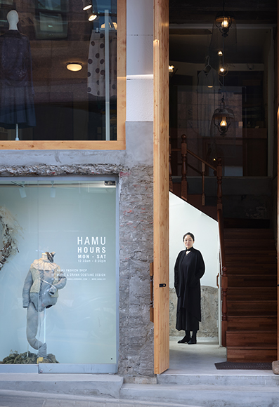 Based on her experiences and her philosophy formed through a long career, Lee has created unique clothing that cannot be categorized. HAMU, her own brand, showcases new hanbok designs that appeal to the public instead of traditional versions. Her designs have no gender division, fixed sizes or extravagant ornaments. “If clothing gets too fancy, the wearer is not revealed. When I made hanbok for the first time while preparing for a play, I was moved by its simple form, elegant colors and graceful movements. Through hanbok, I found the original form and essence of clothes that I must seek,” she said.