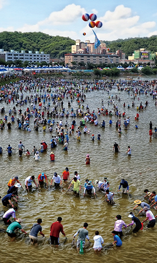 Nutritious sweetfish used to be a delicacy enjoyed by royalty. Such fish only live in pure freshwater, which makes the town of Bonghwa-eup in Bonghwa-gun County, Gyeongsangbuk-do Province, the perfect home for such fish since it has the cleanest water in Korea. The venue is along Naeseongcheon Stream with its cool and pristine air with programs like cooking fish on a grill after catching them with one’s bare hands.