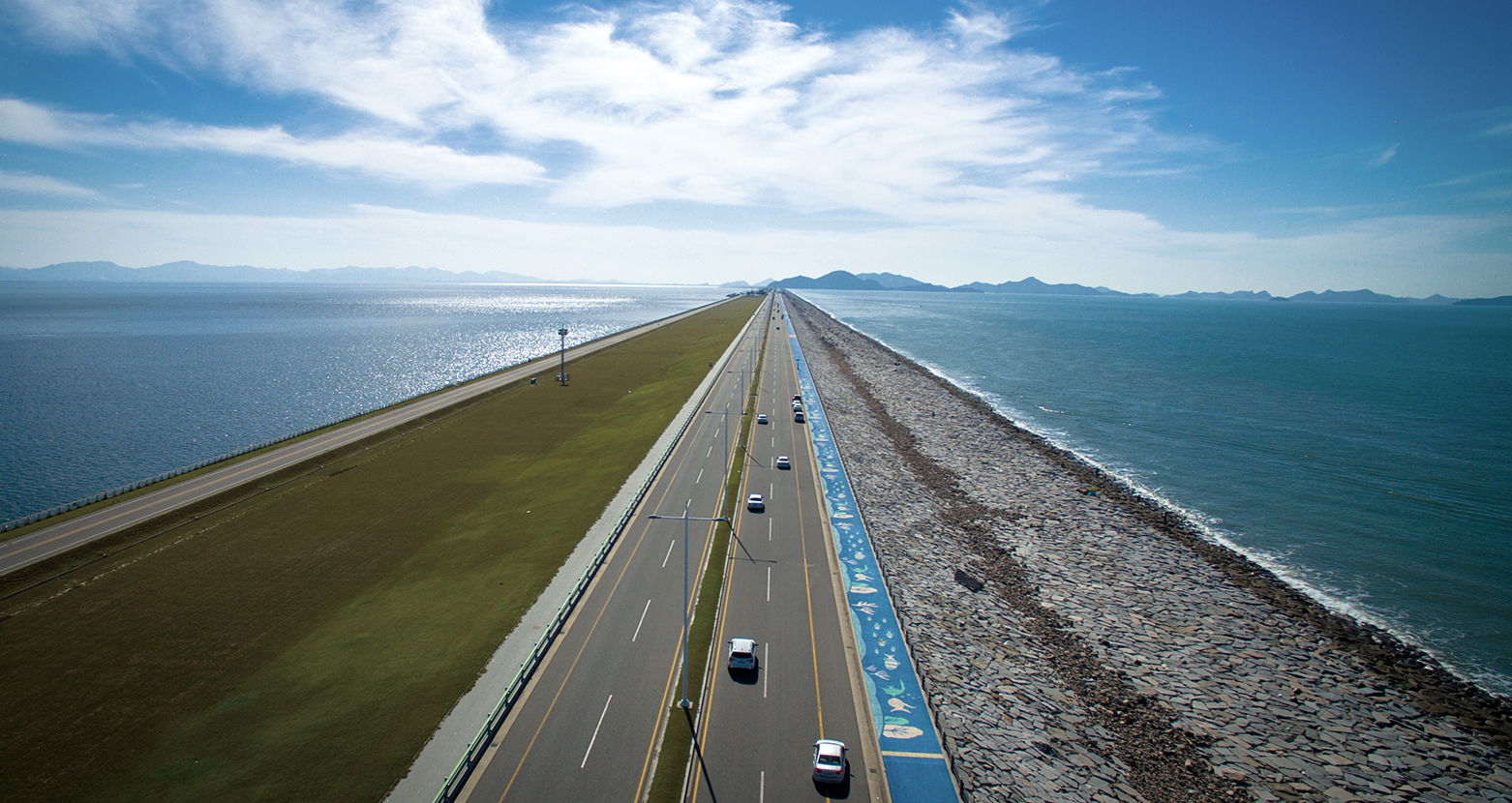 The Saemangeum Seawall is the world’s longest of its kind, offering a unique view along the road as well as a camping site for families. © Saemangeum Development and Investment Agency