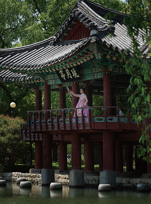 Gwanghallu Pavilion is filled with the powerful and emotional sound of pansori (Korea one-person lyrical opera) singer.