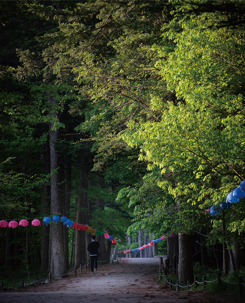 The road to Naesosa Temple is lined with a forest of fir trees, making the trip more refreshing.