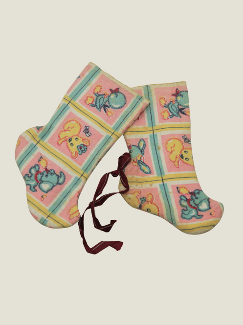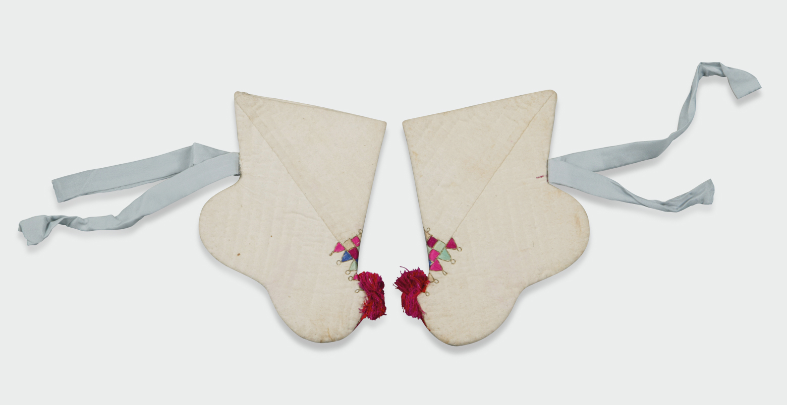 The children’s beoseon, a total length of 12.5 cm, is decorated with dogs, chicks, and rabbits. © Kyungwoon Museum