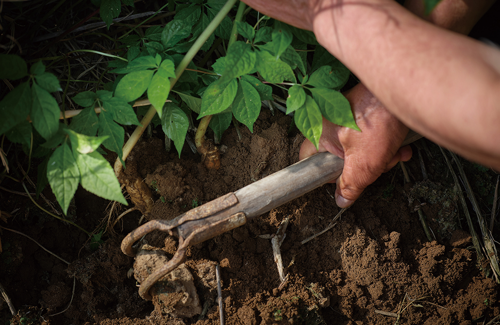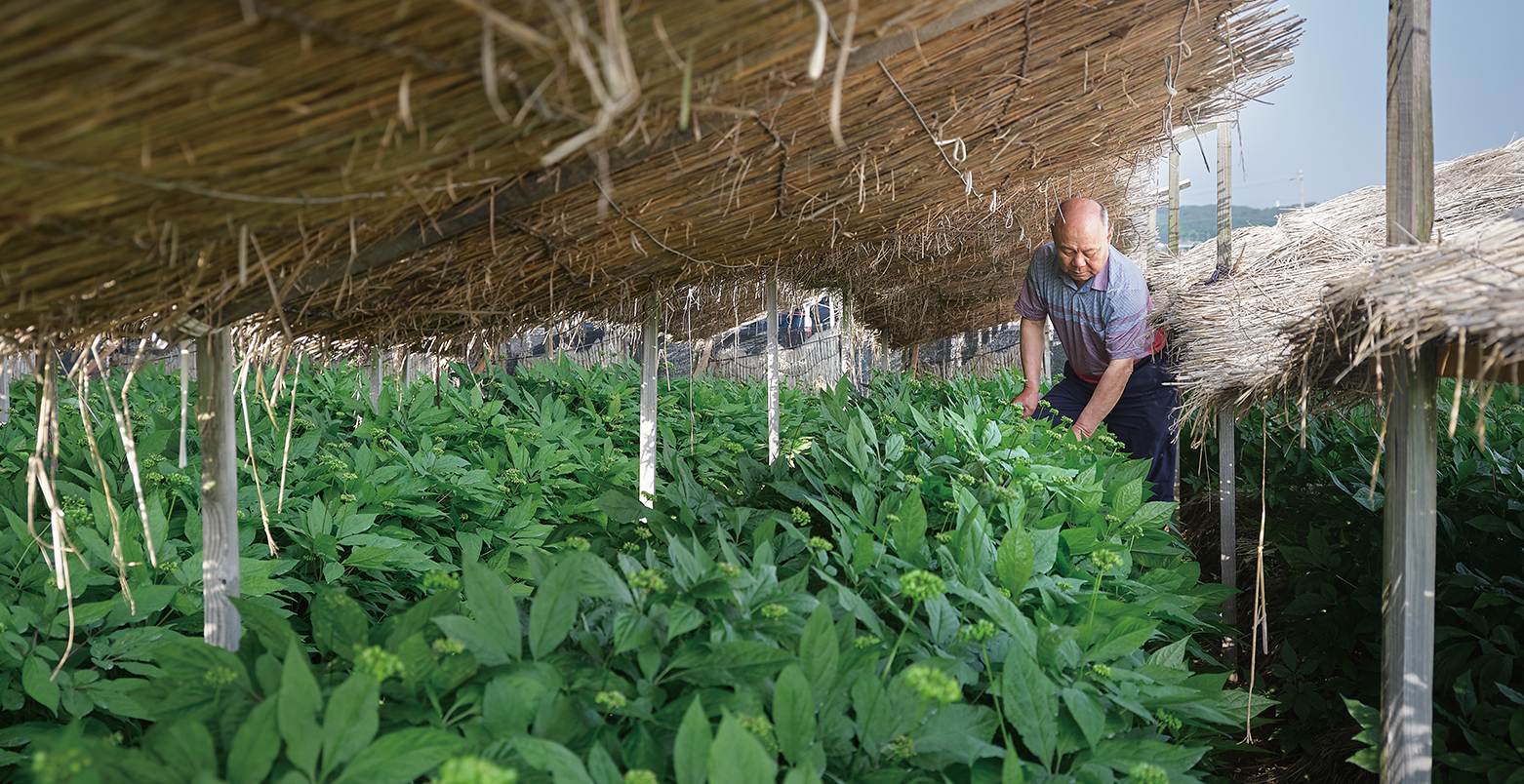 The county’s secret to becoming the nation’s ginseng capital is its blessed nature, with an altitude of around 250 meters above sea level and a basin surrounded by mountains and hills. In addition, fertile soil and an optimal range of diurnal temperature allow cultivation of farmed ginseng that is most similar to the wild variety. Soil packed with nutrients made from nearby compost is perfect for helping ginseng grow deep roots. The plant’s ecological characteristics require half-shade in the forest, which blocks out all but a tenth of the sunlight and obstructs direct rays, and need sloping hills where water does not stay stagnant but drains well to prevent roots from decaying.