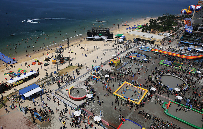 The Boryeong Mud Festival, held at Daecheon Beach, is the nation’s most popular event among non-Koreans. The purpose of this gala is to promote the host city’s premium mud, which is in demand worldwide thanks to the mud’s high quality. To promote cosmetics made from such mud, the city installed a mud mask house and launched the annual festival in 1998.